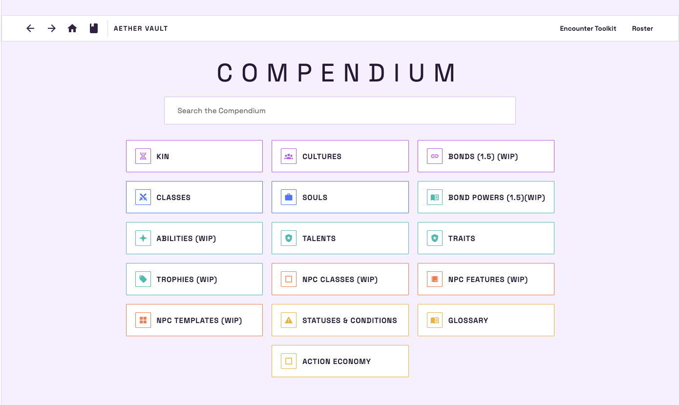 Heavily inspired by COMP/CON for Lancer. Aethervault is a full rules compendium, character sheets, and combat runner for the tabletop RPG game ICON. Designed in React with Discord and Obsidian integration.